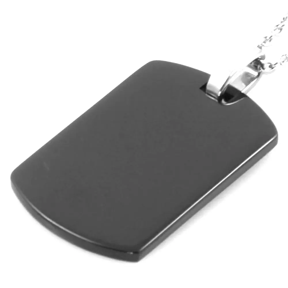 collana piastra militare in acciaio nero personalizzabile sul fronte e sul retro catena da cm 50 pendente cm 30 cm 20 cll0712