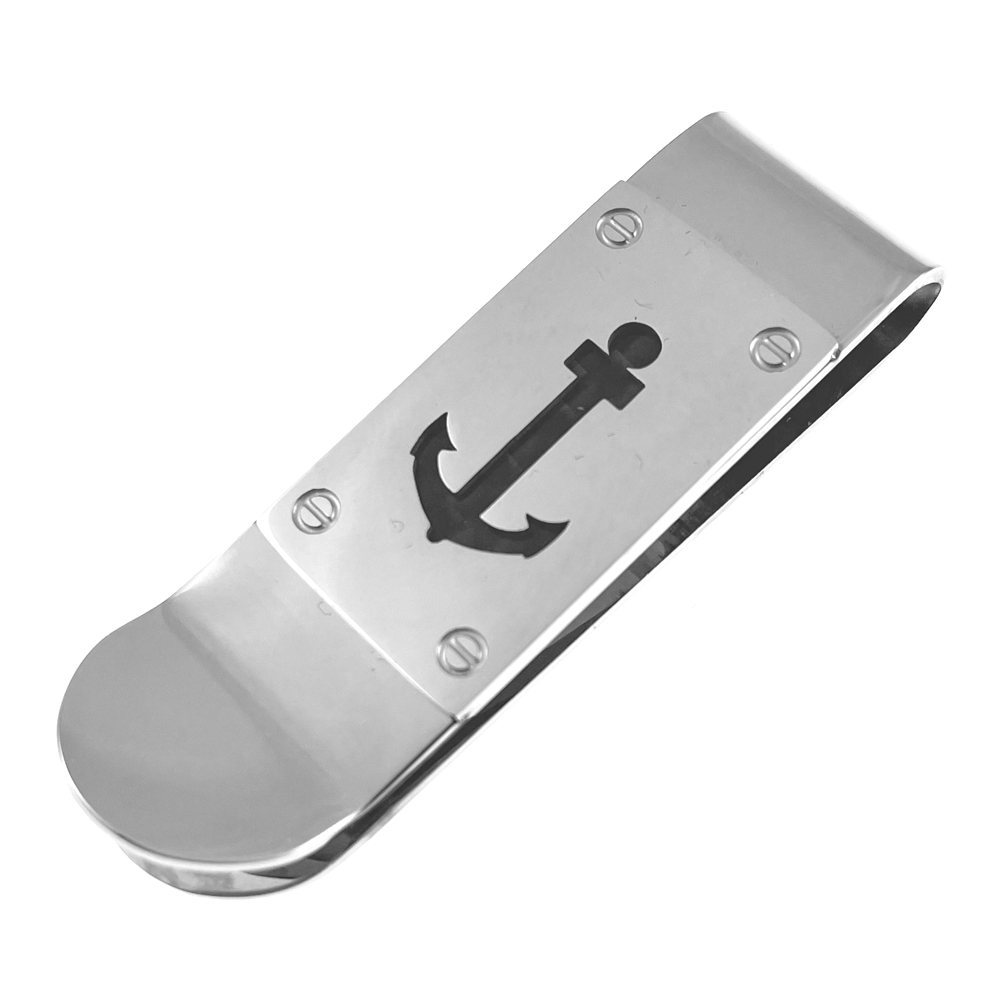 fermasoldi uomo acciaio nero e ramato con ancora personalizzabile con incisione sul retro mm 45 mm 16 fsl014