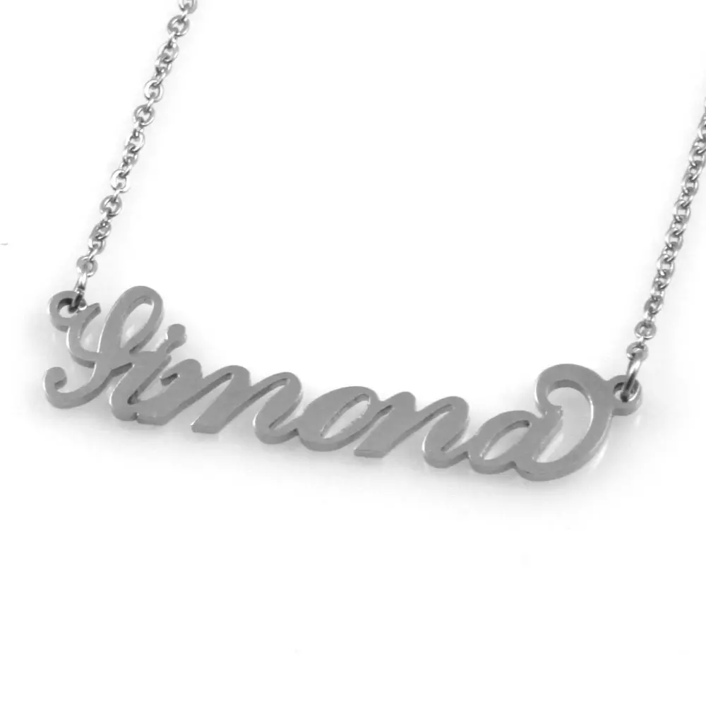 Collana con nome Simona corsivo in acciaio inossidabile inalterabile catena fino a cm 50 cll1802