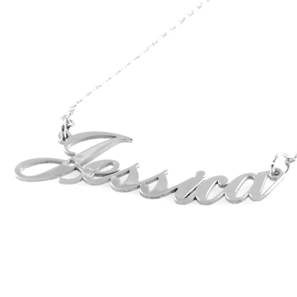 Collana con nome Jessica corsivo in acciaio inossidabile inalterabile catena fino a cm 50 cll0868