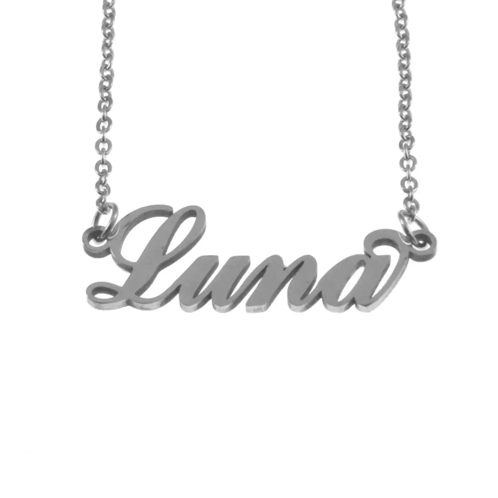 Collana con nome Luna corsivo in acciaio inossidabile inalterabile catena fino a cm 50 cll0535