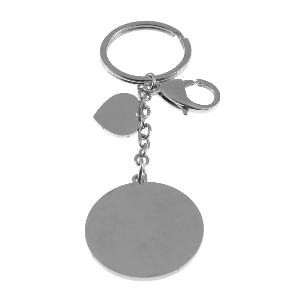 portachiavi rotondo in acciaio personalizzabile con incisione sul fronte e sul retro cm 7 mm 35 prt0053