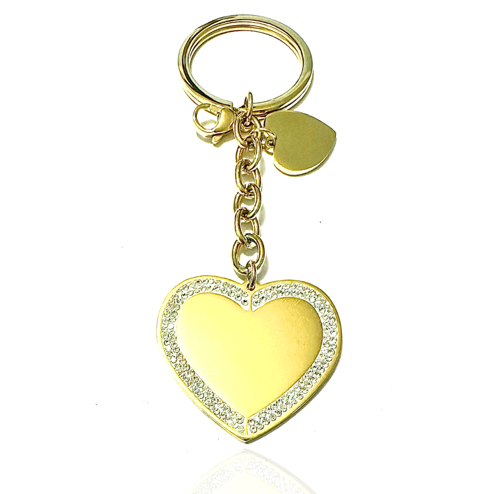 portachiavi cuore donna acciaio dorato e strass cm 7 cm 3 prt0312