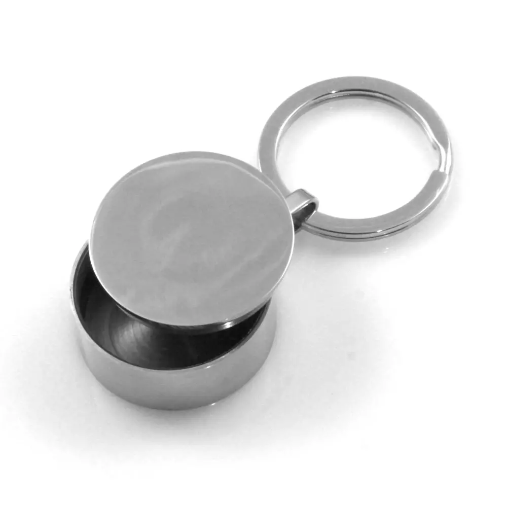 portachiavi uomo barilotto contenitore in acciaio chiusura a vite personalizzabile con incisione sul fronte e sul retro cm 7 cm 3 alto mm 12 prt0241