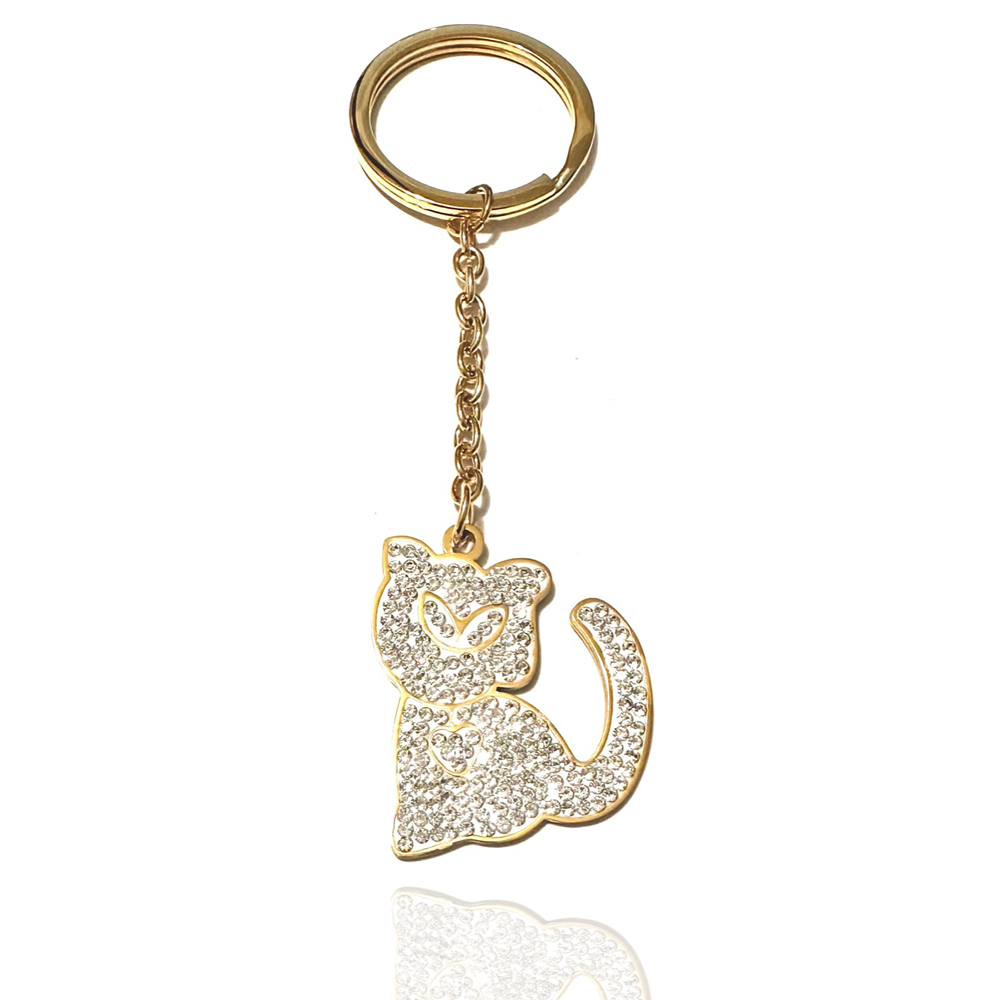 portachiavi gatto donna acciaio dorato e strass cm 7 cm 3 prt0318