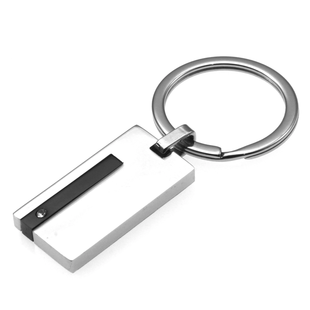 portachiavi uomo rettangolare acciaio e strass personalizzabile con incisione sul fronte e sul retro cm 65 mm 20 prt0033