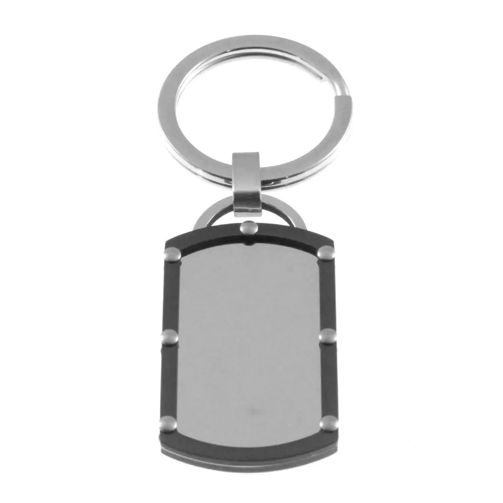 portachiavi uomo piastra nero e acciaio personalizzabile con incisione sul fronte e sul retro cm 7 mm 30 mm 24 prt0205