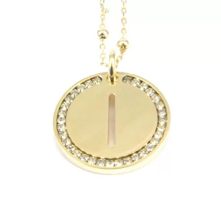 collana con lettera i in bronzo dorato e strass clib0023