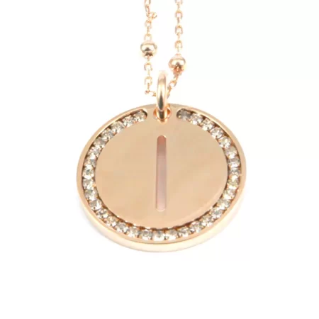 collana con lettera i in bronzo ramato e strass clib0024