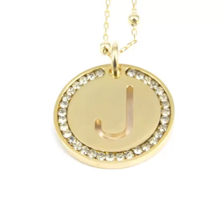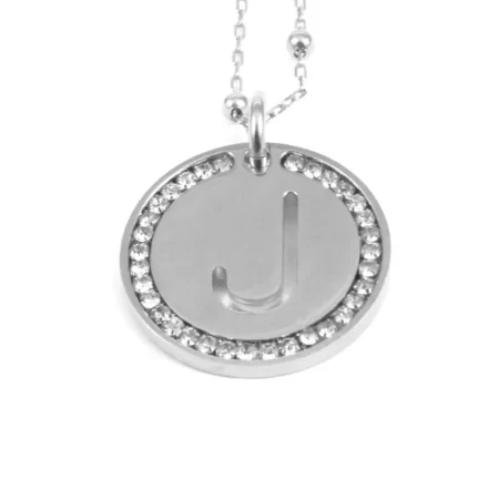 collana con lettera j iniziale acciaio strass cll1952