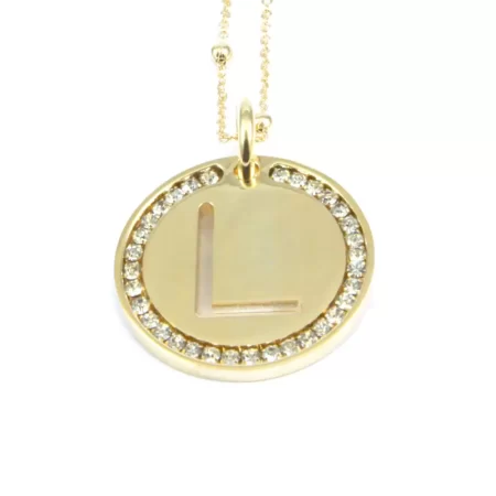 collana con lettera l in bronzo dorato e strass clib0032