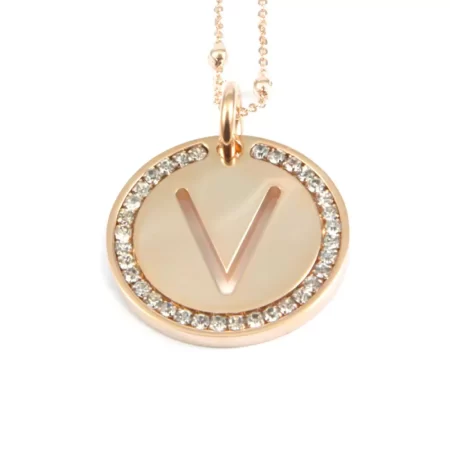 collana con lettera v iniziale acciaio strass cll1964