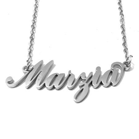 Collana con nome Margherita stampatello in acciaio cll0536s