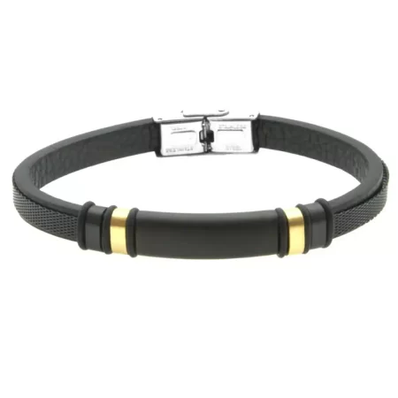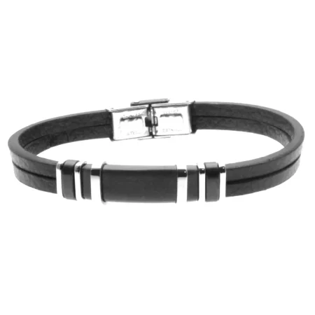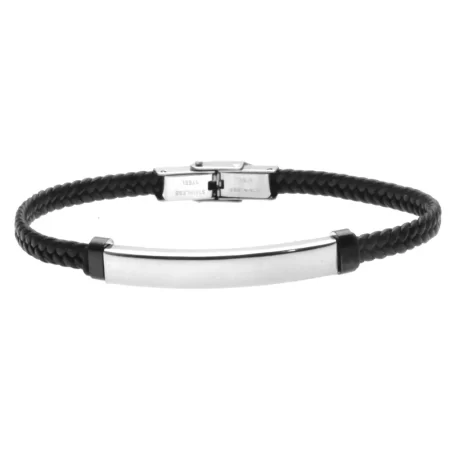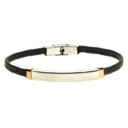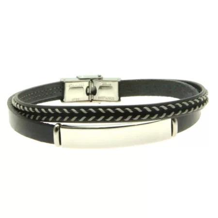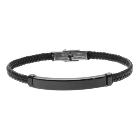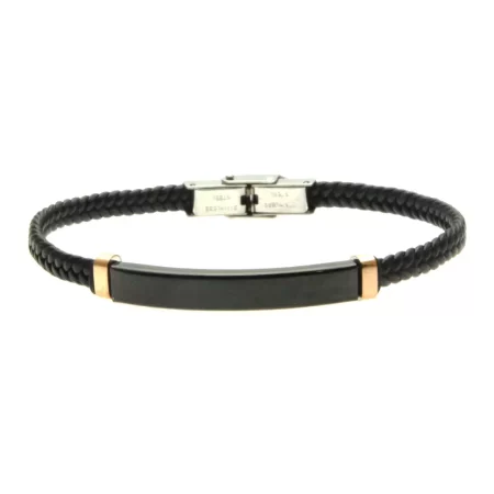 bracciale pelle uomo piastra acciaio nera bcc2909