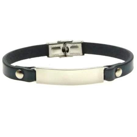 bracciale uomo pelle blu piastra acciaio bcc2890