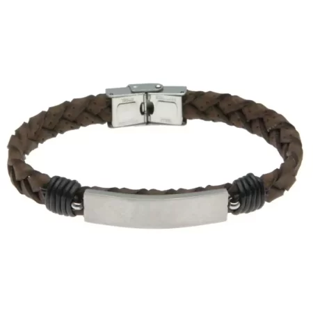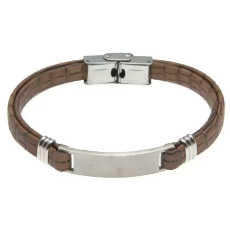 bracciale uomo pelle marrone piastra acciaio bcc2621