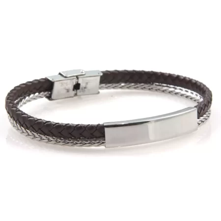bracciale uomo pelle naturale piastra acciaio bcc2653