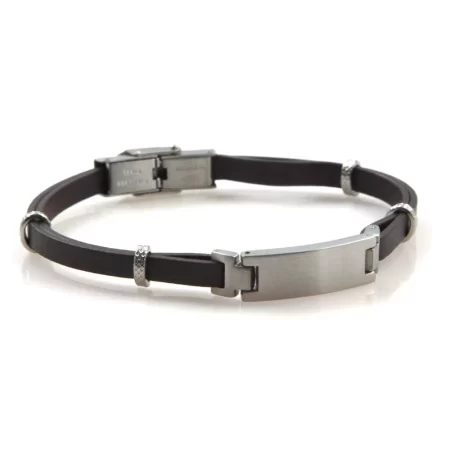 bracciale uomo pelle nera piastra acciaio bcc0709