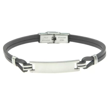 bracciale uomo pelle nera piastra acciaio bcc0434