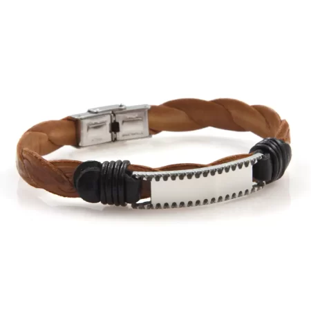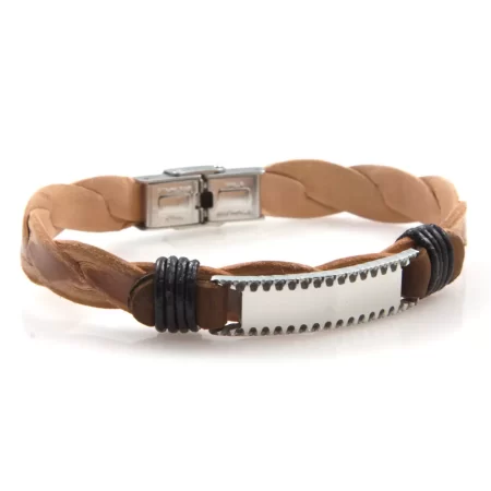 bracciale uomo pelle naturale piastra acciaio bcc2652