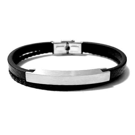 bracciale uomo pelle nera piastra acciaio bcc0458
