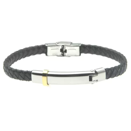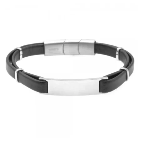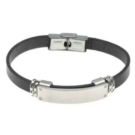 bracciale uomo pelle nera piastra acciaio bcc2329