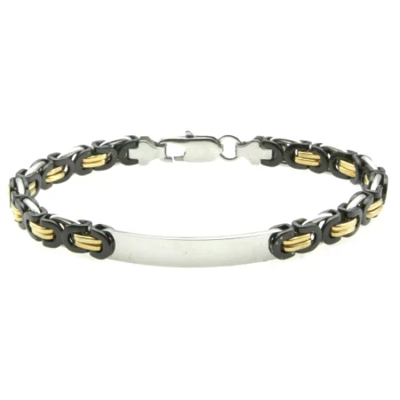 bracciale uomo acciaio e dorato piastra per incisione bcc2760