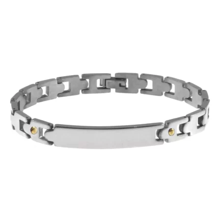 bracciale uomo acciaio e oro piastra per incisione bcc2703