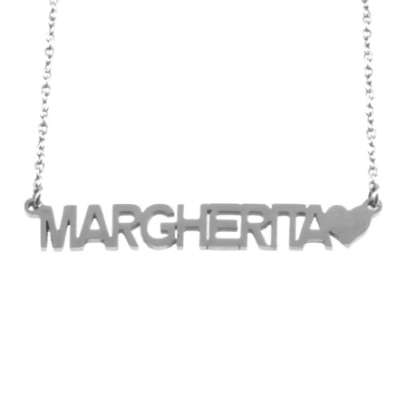 Collana con nome Margherita stampatello in acciaio cll0536s